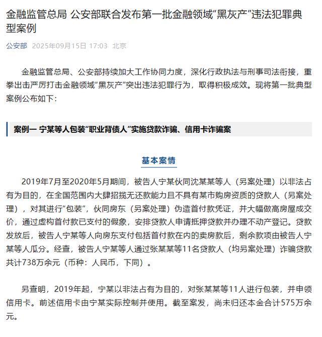 原标题:《金融监管总局、公安部联合发布第一批金融领域“黑灰产”违法犯罪典型案例》