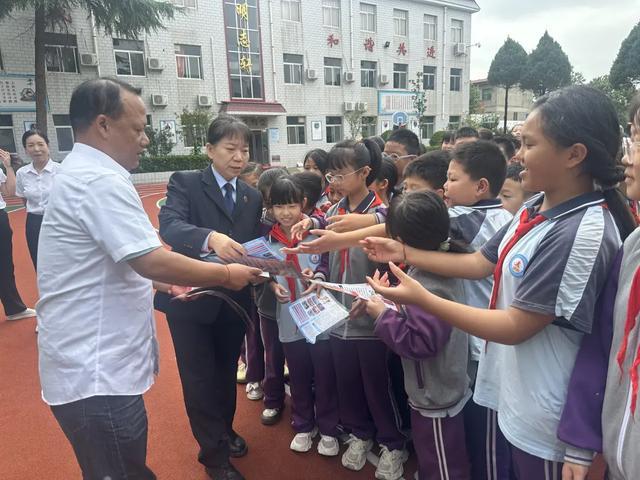 此外,活动还聚焦校园安全热点,重点普及“预防校园霸凌”和“防范网络诈骗”知识。工作人员通过分析校园霸凌的表现形式与危害,教给同学们“不参与、敢拒绝、会求助”的应对方法;同时结合小学生常用的社交、游戏软件,讲解“虚假交易”、“冒充公检法转账”等常见诈骗套路,引导大家提高警惕,保护好个人信息和财产安全。最后,工作人员给老师和学生们发放民法典,预防校园霸凌等法治宣传资料,解答师生法律问题。