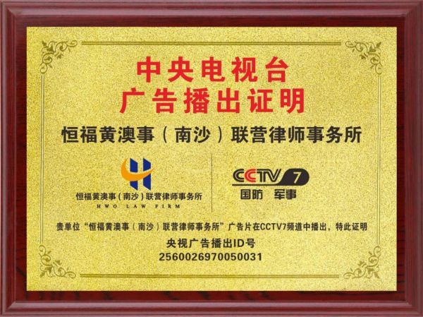恒福黄澳事(南沙)联营律师事务所主任林翠珠博士的品牌展播在中央广播电视总台CCTV - 7国防军事频道正式开播,8月18日早上7:30 - 8:00黄金时段播出,这一权威媒体的宣传,让林翠珠博士在专业领域的影响力得到进一步提升。